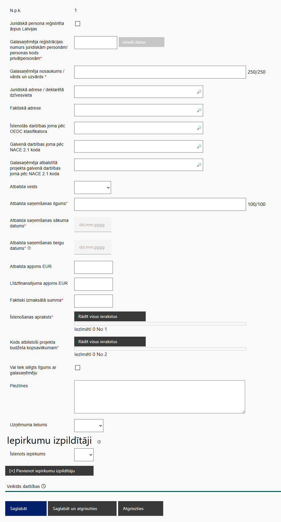 Galasaņēmēja pievienošanas forma
