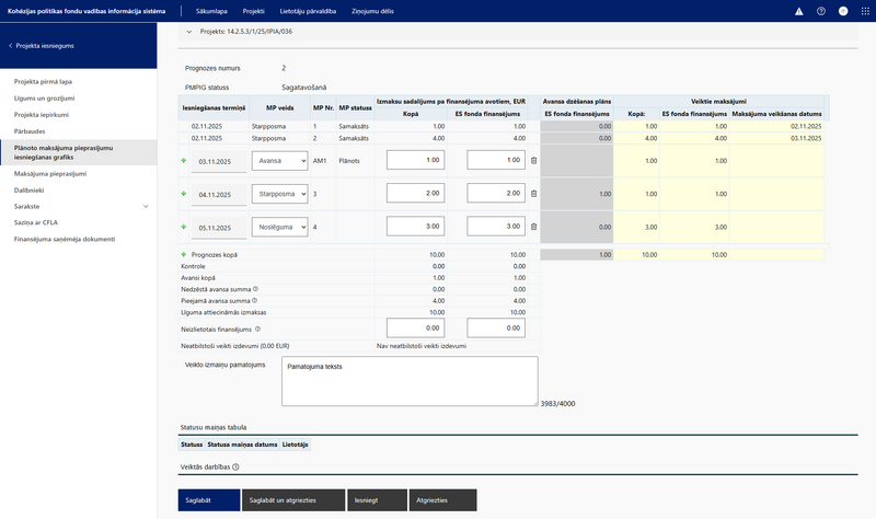 Plānoto maksājumu pieprasījumu iesniegšanas grafika ievadforma