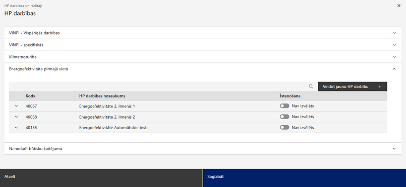 - Darbības un izmaksas (tiek attēlota tikai PI, kas ir pakārtoti SAMP 2.2.3.6.);